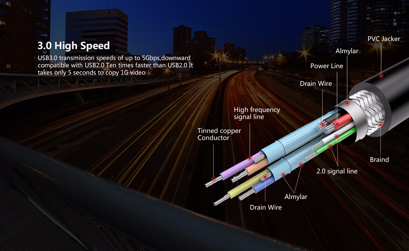 ● 4.High performance USB 3.0 Male to Male cable connects a USB peripheral with USB 3.0 type A port (backwards compatible with USB 2.0 type A port) to a computer for speedy file transfer Double-shielded, twisted-pair data wiring minimizes cross
