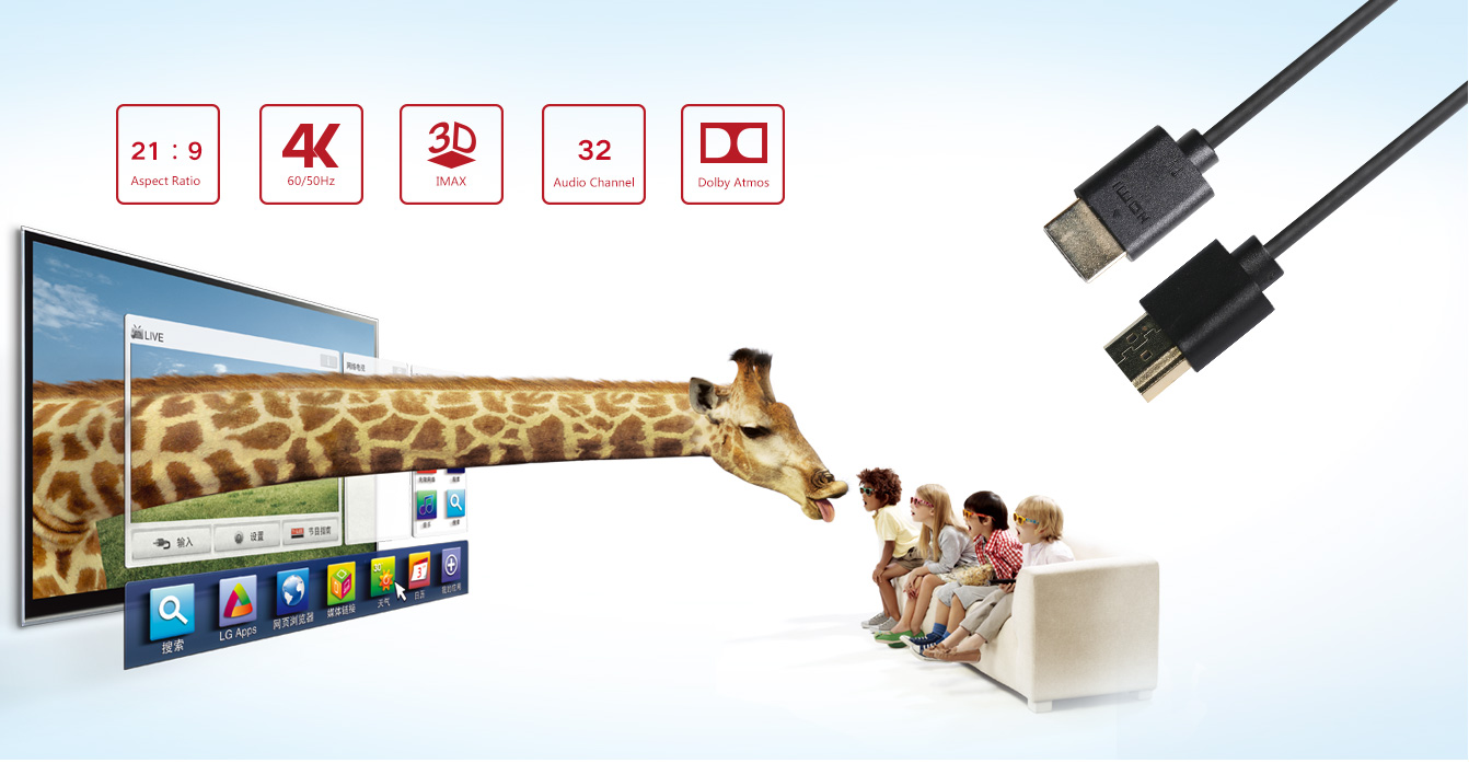 • 支持4K、3D 音頻同步 兼容性強 超細柔軟