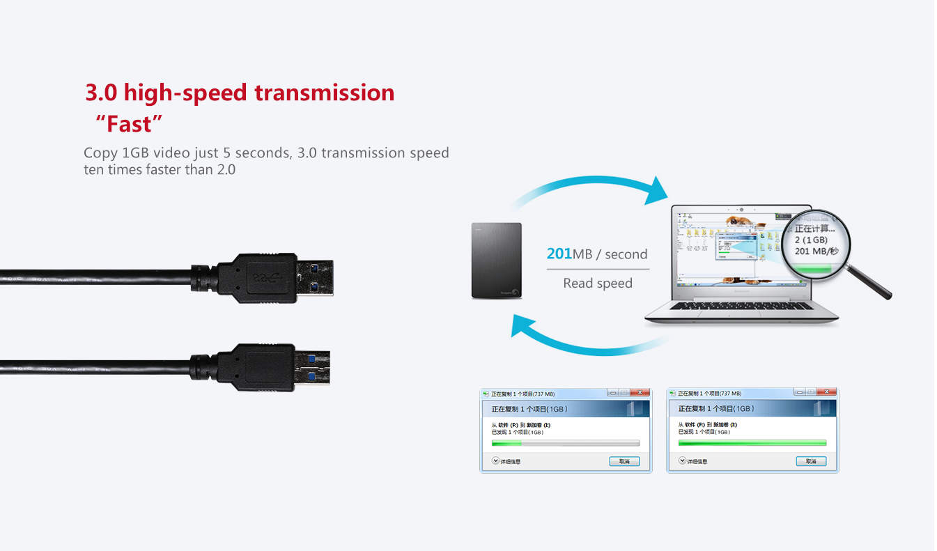 ● 1.USB3.0 transmission speeds of up to 5Gbps, downward compatible with USB2.0