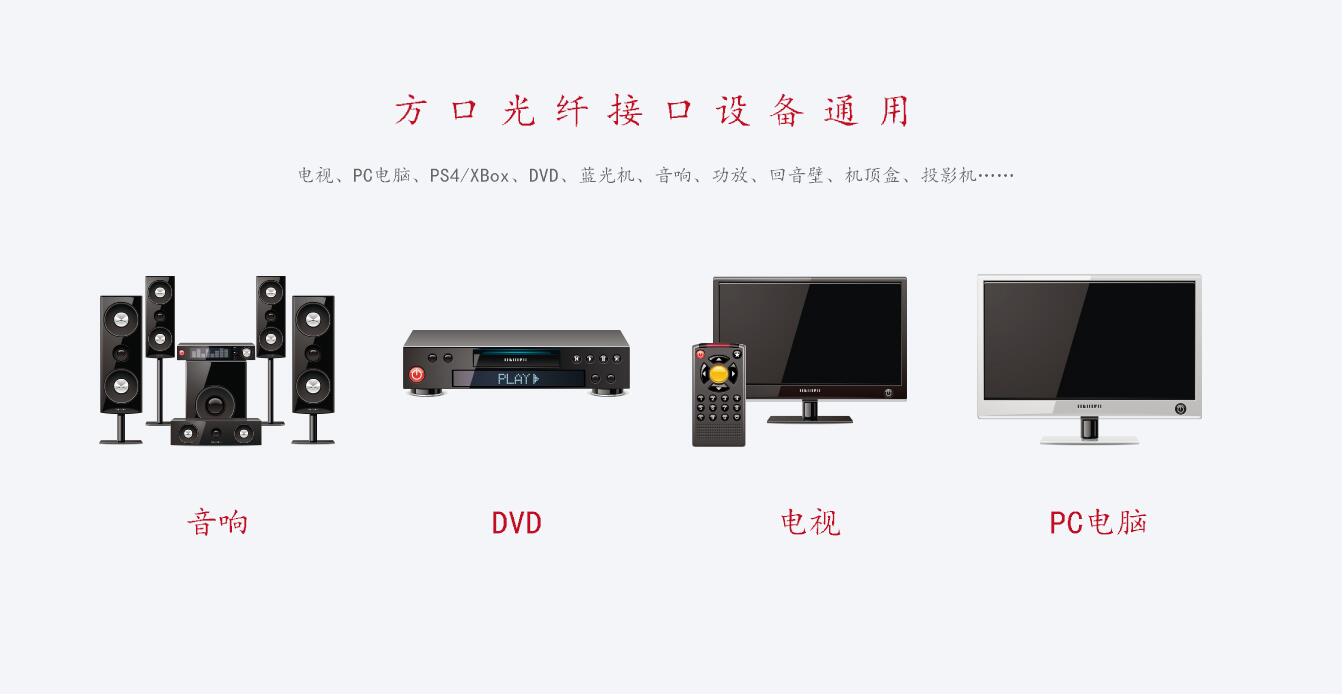 ● 1.傳輸效率高,以光脈沖的形式來(lái)傳輸數(shù)字信號(hào),給您帶來(lái)不一樣的聽(tīng)覺(jué)體驗(yàn);